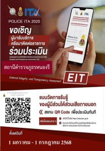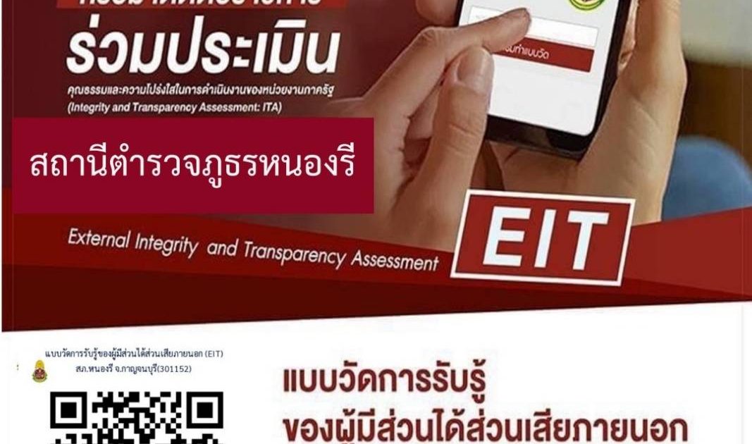 ขอเชิญผู้มารับบริการหรือมาติดต่อราชการร่วมประเมินคุณธรรมและความโปร่งใสในการดำเนินงานของหน่วยงานภาครัฐ (Integrity and Transparency Assessment : ITA) ประจำปีงบประมาณ พ.ศ. 2568 ของสถานีตำรวจภูธรหนองรี ประจำปีงบประมาณ พ.ศ. 2568
