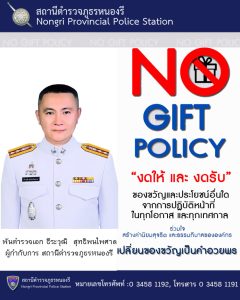 วันที่ 10 มีนาคม 2568 พ.ต.อ.ธีระวุฒิ สุทธิพนไพศาล ผกก.สภ.หนองรี ประกาศ นโยบาย “No Gift Policy ไม่รับ – ไม่ให้” พร้อมด้วยข้าราชการตำรวจ สภ.หนองรี ทุกนาย น้อมรับนโยบายดังกล่าว