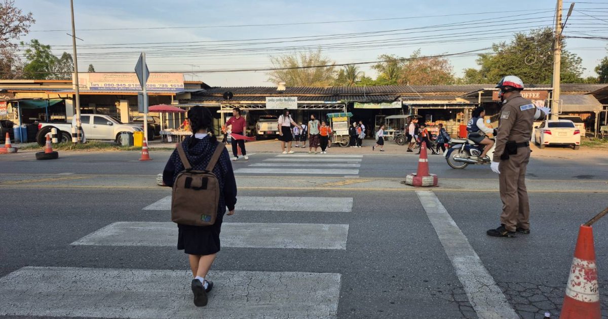 สภ.หนองรี ว.4 การจราจร เรียนผู้บังคับบัญชา เพื่อโปรดทราบ วันนี้ ( 11/3/68 ) เวลา 07.00 น. ร.ต.ท.สมพร ไศลบาท รอง สว.(ป.) สภ.หนองรี พร้อม ครู รร.บ้านหนองรี ว.4 การจราจรที่หน้า รร.บ้านหนองรี ม.2 ต.หนองรี อ.บ่อพลอย จว.กาญจนบุรี