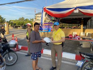 พ.ต.ท.บัญชา พาหุพันธ์ รอง ผกก.ป.สภ.หนองรี, พ.ต.ท.ประมวล ข้อเพชร สว.อก.สภ.หนองรี, กก.ตร.สภ.หนองรี และ ข้าราชการตำรวจ สภ.หนองรี, อาสาสมัคร ร่วมกิจกรรมรณรงค์ป้องกันและลดอุบัติเหตุทางถนน จิตอาสาบริการ แจกหมวกนิรภัยให้กับประชาชน จำนวน 60 ใบ ณ เต้นท์หน้าเทศบาลตำบลหนองรี
