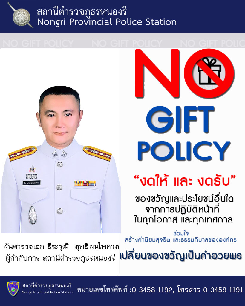 ประชาชนผู้มาใช้บริการบนสถานีตำรวจภูธรหนองรี หากไม่ได้รับความสะดวก เชิญพบ ผู้กำกับการสถ้านีตำรวจภูธรห